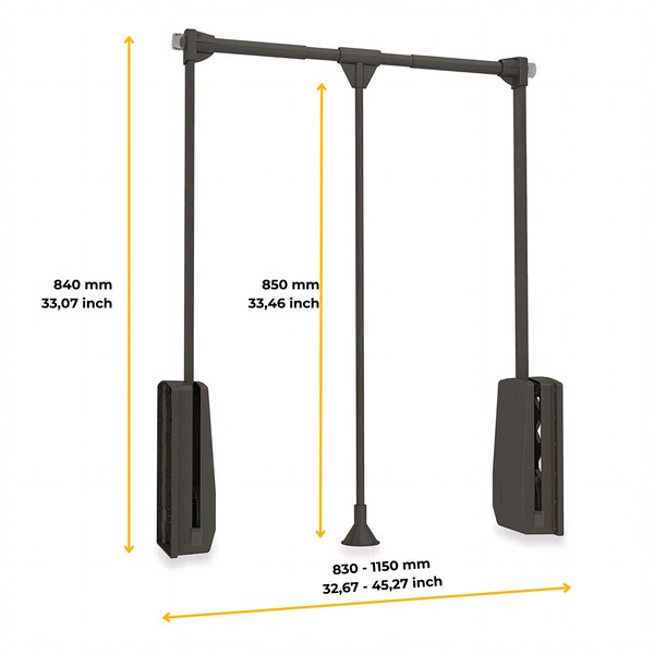 Colgador abatible para armario Hang, ancho regulable 830-1150mm, Acero y Plástico, Pintado moka