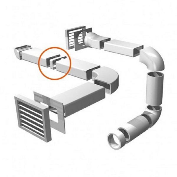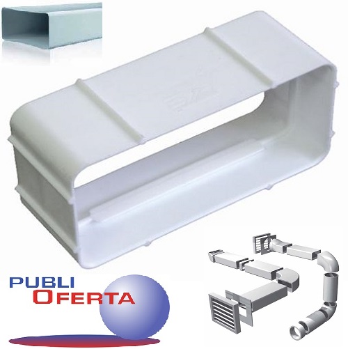 Empalme recto Tubo Rectangular extracción Campanas/Aerotermia 147x70mm.Blanco
